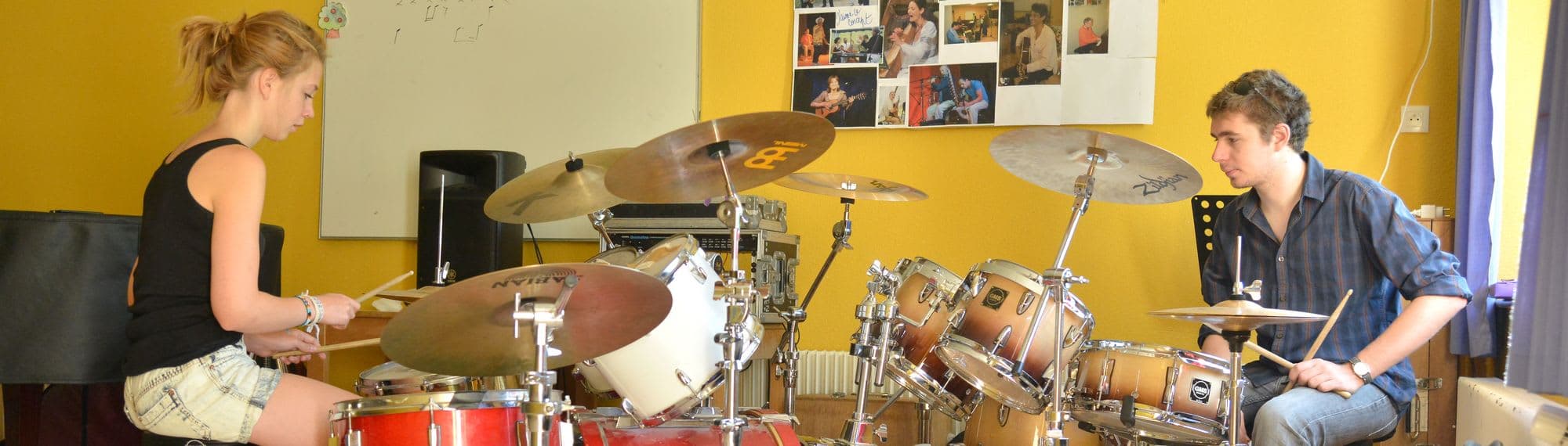 Chaque jour des cours collectifs de musique sont donnés par groupe de niveau. L’occasion de revoir les bases de la musique comme le solfège, la lecture de partition, la rythmique, mais aussi de travailler sur des exercices d’improvisation à plusieurs.